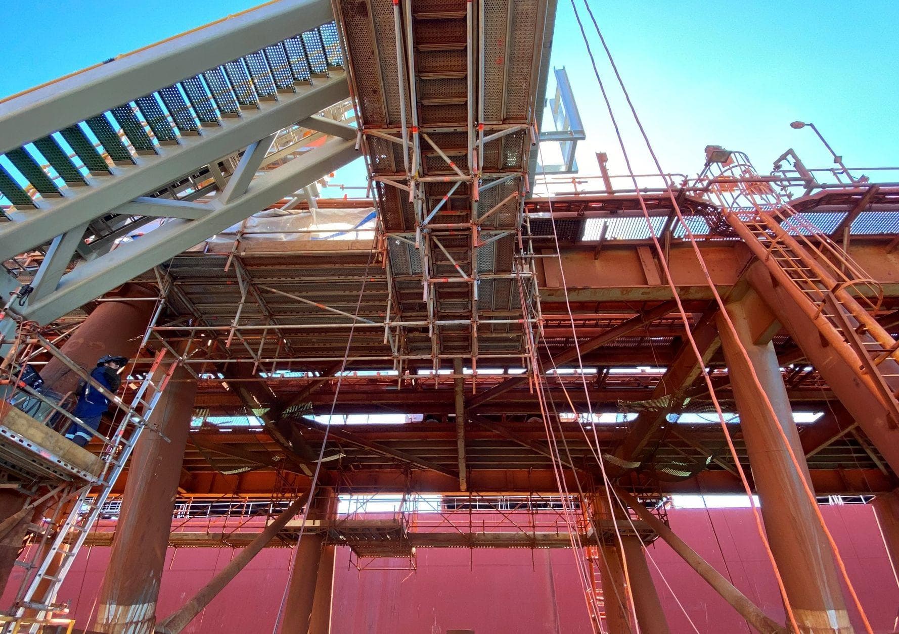 Works included intricate hung and cantilever scaffolds in keeping with the site’s stringent working over water scaffolding procedure, ship loader movements and large tidal fluctuations.